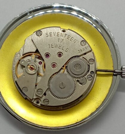 Marquage sur le mécanisme: SEVENTEEN 17 JEWELS et 2609H sur un pont, logo Poljot (couronne) sur la platine