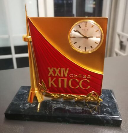 Horloge de table Poljot produite pour le 24e congrès du Parti communiste d’Union soviétique.