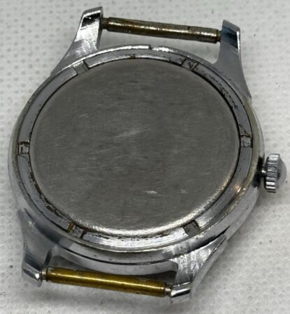 Mentions sur le calibre : n° de série (68702) sur un pont, 15 камня (15 rubis) et logo de la Fabrique de montres de Petrodvorets (initiales dans un losange) sur un autre, cinq triangles formant une étoile sur le rochet