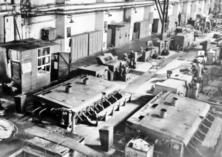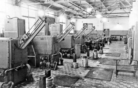 Les ateliers n’étaient pas chauffés et tant que la chaufferie n’était pas opérationnelle, on allumait des feux, des braseros, des fours à coke et des poêles de fortune en fonte là où l’installation des équipements ou d’autres travaux de construction étaient en cours. En décembre 1941, les tours de l’atelier de réparation et de mécanique ont été mis en service, d’abord pour produire des outillages et assembler les équipements en cours d’installation. En un temps très court, les autres ateliers ont été équipés et sont entré en activité.