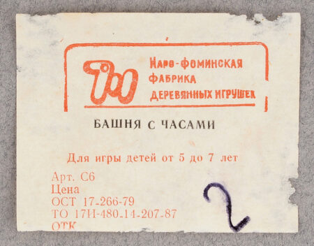 Sur l’étiquette: башня с часами (Tour avec une horloge), наро-фоминская фабрика деревянных