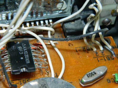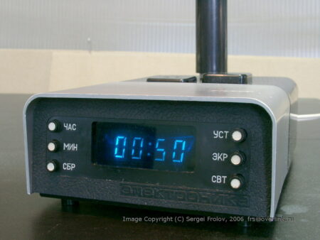 L’horloge Elektronika est basée sur le KA1035HL1, un circuit intégré d’horloge courant à l’époque, et sur le tube fluorescent sous vide IVL2-7/5.