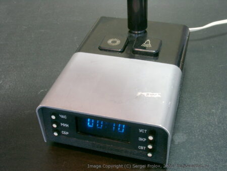 Lampe-horloge de table de la Fabrique « Soyouz » de Novossibirsk qui produisait également le circuit intégré de l’horloge (type KA1035HL1).