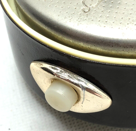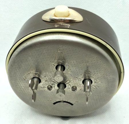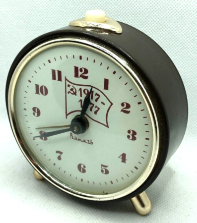 Réveil « Vitiaz » (Витязь, « preux » ou « chevalier ») de la Fabrique horlogère de Rostov.Fabriqué en 1977 pour les soixante ans de la révolution d’OctobreMécanisme: 6373Boitier modèle 306Émaillé de noirDiamètre: 94mmHauteur: 108mm
