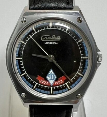 Moins connu que le Dynamo Kiev (voir ici les montres célébrant le Dynamo Kiev), Le Dynamo Moscou a été fondé le 18 avril 1923 en tant que section footballistique de la nouvelle société sportive Dynamo, créée par le commissaire du peuple à l’intérieur sous l’impulsion de Félix Dzerjinski, afin de permettre aux agents des milices, de la sécurité, des services de renseignement, ainsi qu’à d’autres fonctionnaires tels que les collecteurs d’impôts, de rester en bonne condition physique. Les couleurs de la société sont le bleu et le blanc et son emblème un losange avec la lettre D en cyrillique cursif. Les premiers joueurs de cette nouvelle équipe proviennent de plusieurs clubs moscovites dissous pour laisser place au Dynamo, le plus notable étant le Sokolniki Moscou. En 1928 est construit le stade du Dynamo: