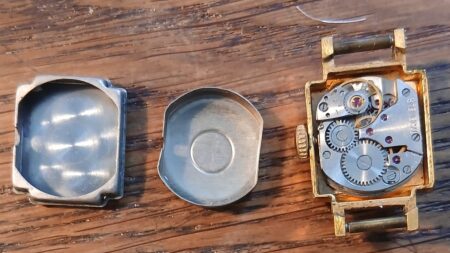 Boîtier : Type 323, en laiton plaqué or (poinçon AU sur le bord supérieur)