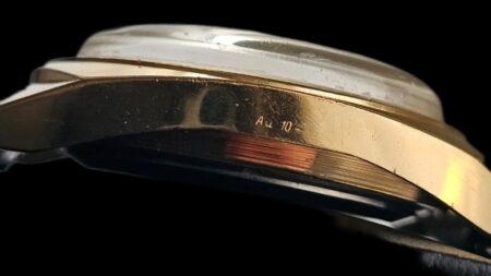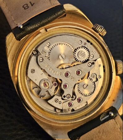 Boîtier de laiton plaqué or à 10 microns (mention AU10 sur la tranche) type 474 à double couronnes.