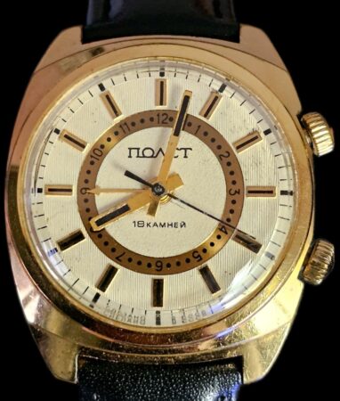 Montre bracelet à alarme de marque Poljot de la 1ère Fabrique de Montres de Moscou.