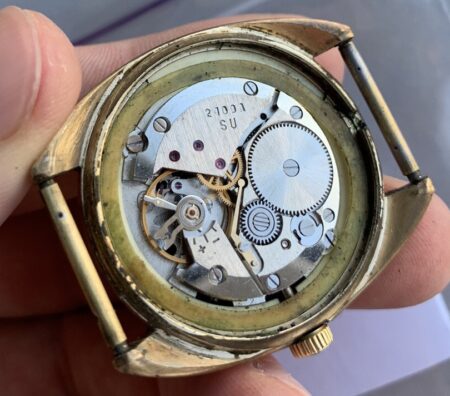 Mentions sur le calibre : 2409A et SU (Soviet Union) sur le pont, n° de série et logo Vostok (B dans un cercle) sur la platine.