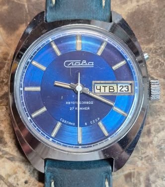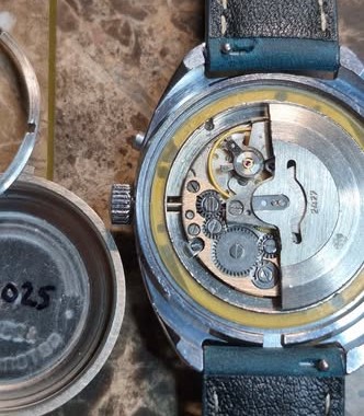 Mentions sur le calibre : 2427 sur le rotor, SU et logo Slava sur la platine.