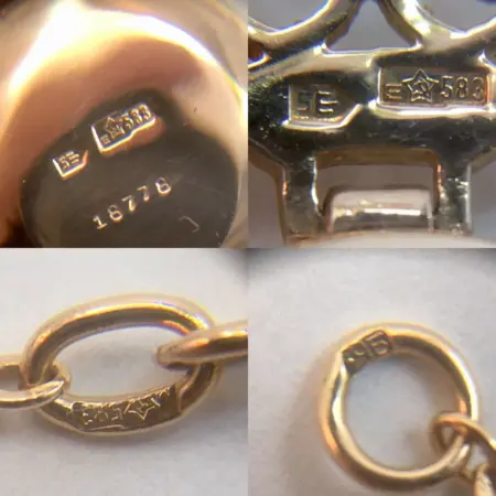 Gravure sur le fond : poinçons 18778 (n° de la montre), 583 pour le taux d’or, E8 (pour Erevan)