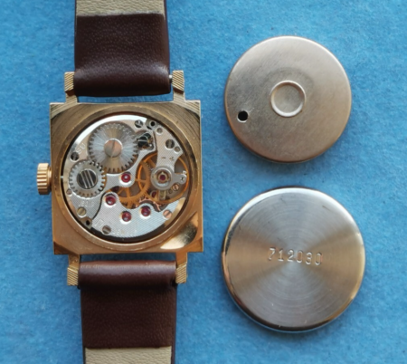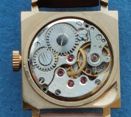Mentions sur le calibre : 1601A, SU et 17 JEWELS sur les ponts, logo de la fabrique sur la platine